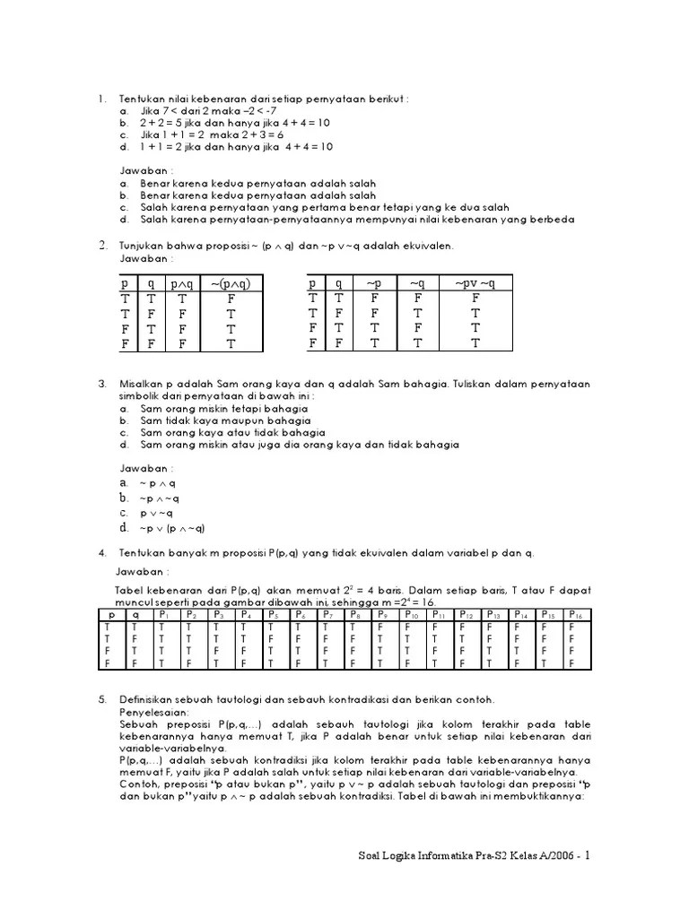 Berdasarkan kedua contoh sebelumnya, dapat disimpulkan bahwa proposisi. Kunci jawaban tema 2 kelas 6. Contoh soal logika matematika dan pembahasan. Rumusnya seperti di bawah ini: Definisi ekuivalensi, contoh soal dan pembahasannya.