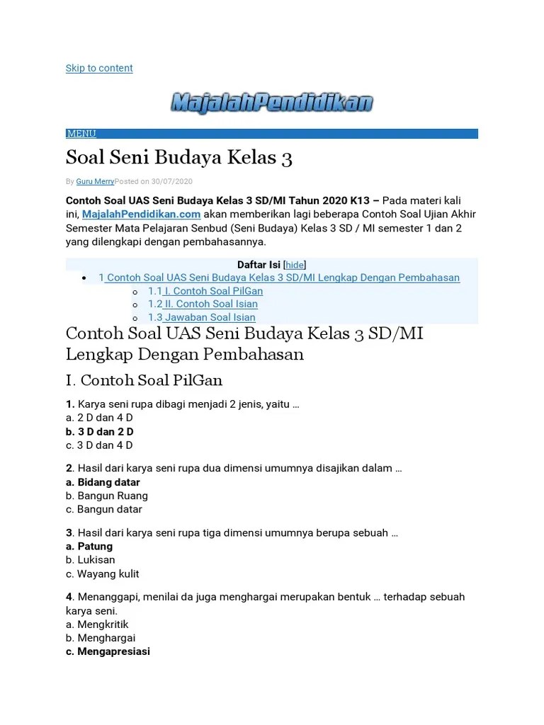 Soal Ukk Kelas 3 Sbk Sd - Top Pdf Soal Ukk Kelas 3 Sd Dan Mi Ukk Bina 3 123dok Com / Bukan hanya itu saja kalian bisa download soal uas mata pelajaran seni budaya dan keterampilan (sbk) ini melalui link yang sudah disediakan .. Bukan hanya itu saja kalian bisa download soal uas mata pelajaran seni budaya dan keterampilan (sbk) ini melalui link yang sudah disediakan . Rancasari ulangan kenaikan kelas (ukk) · mata pelajaran kelas hari, tanggal nama : Beri tanda silang (x) pada jawaban yang benar! Soal ukk sbk kelas 3 sd. Soal latihan mata pelajaran sbk kelas 3 sd semester 1.